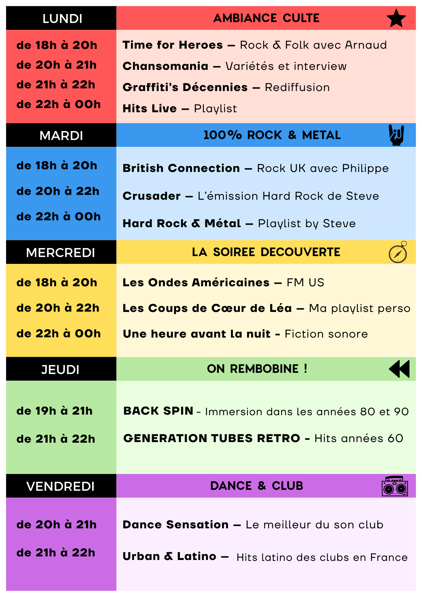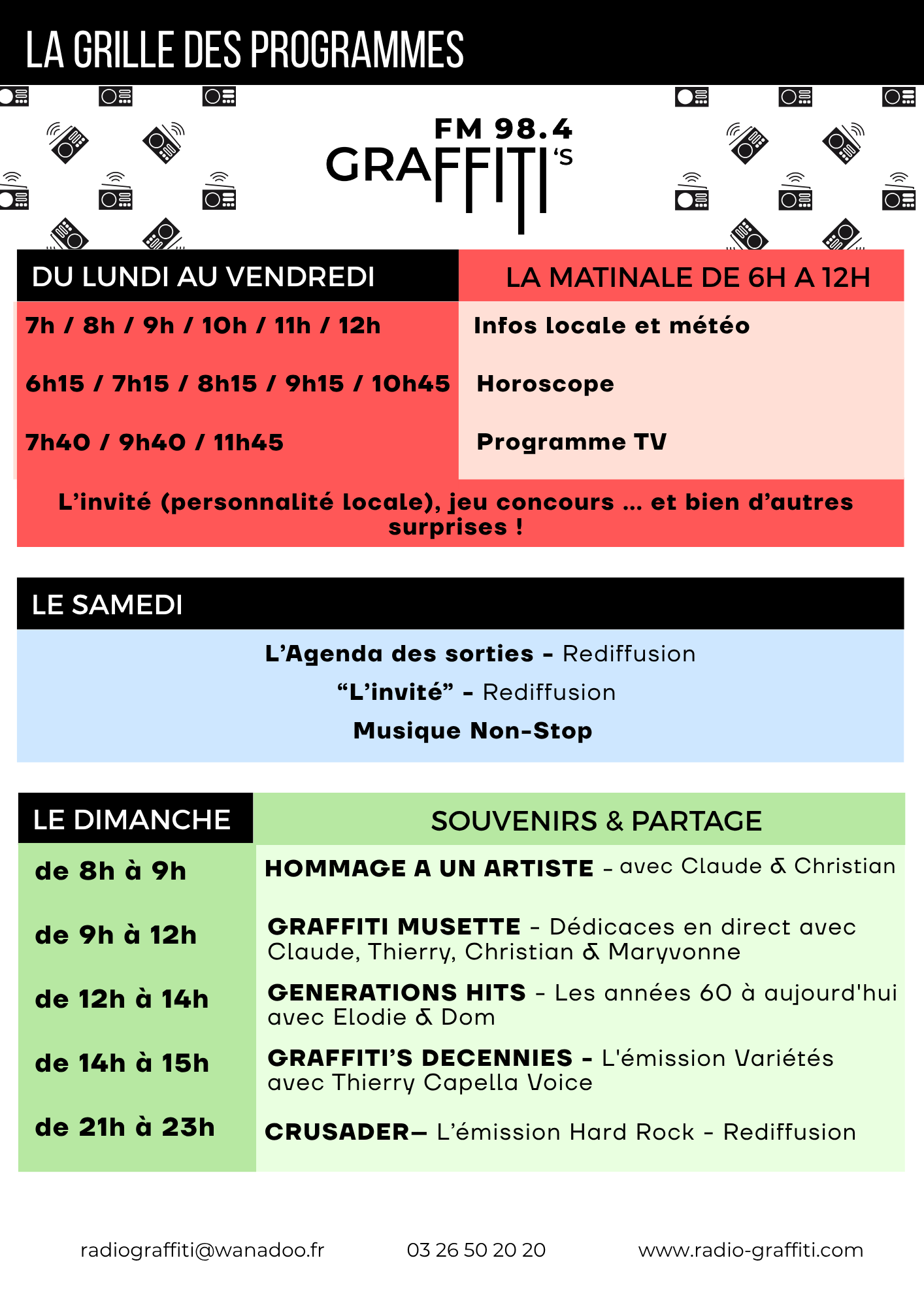 Retrouvez ici la grille complète des programmes de Radio Graffiti’s !
